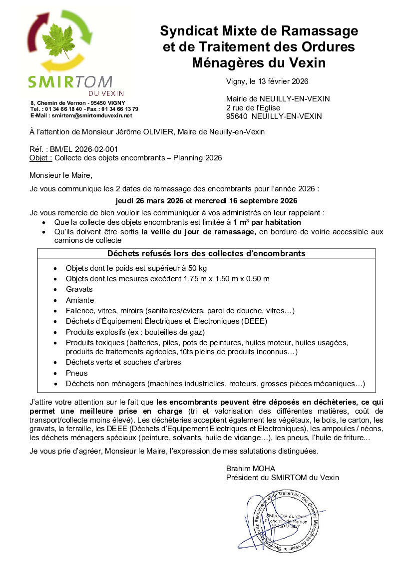 SMIRTOM : Planning 2026 ramassage des encombrants
