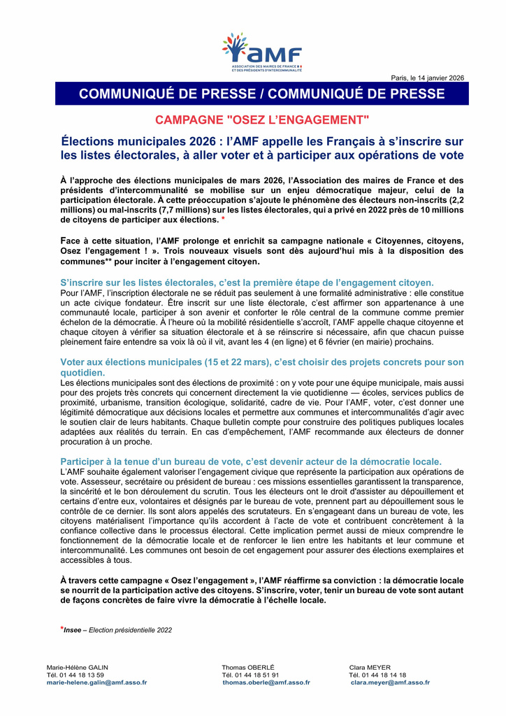 / Communiqué de presse AMF : Elections municipales