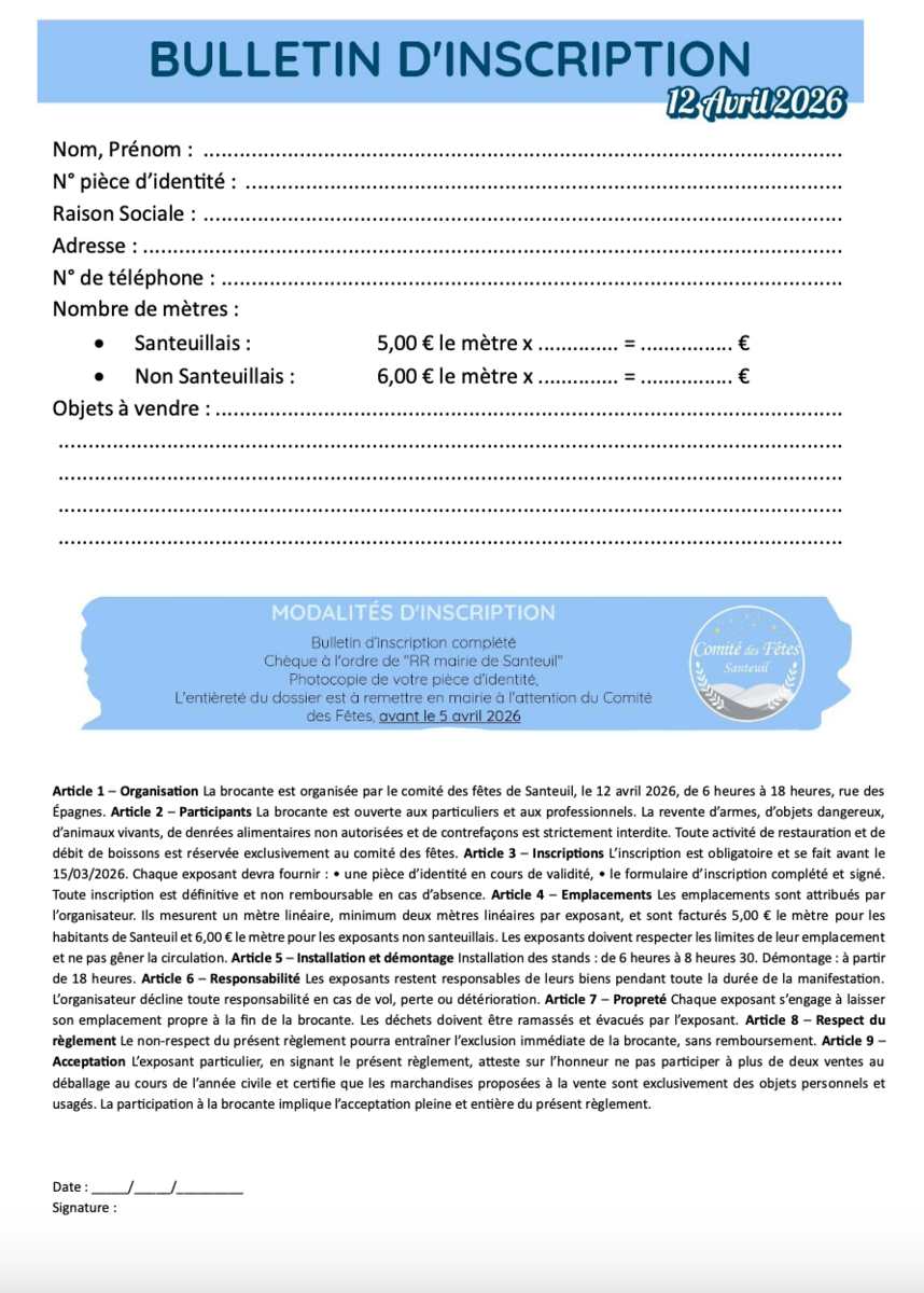 Pour toute question ou information : comite-des-fetes@santeuil.fr ou 06 14 85 75 52.