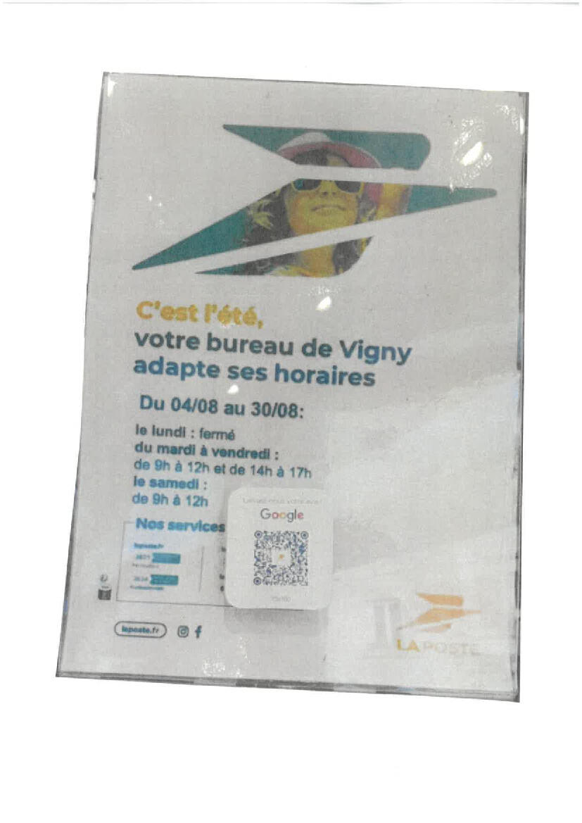 FERMETURE EXCEPTIONNELLE DU BUREAU DE POSTE DE VIGNY