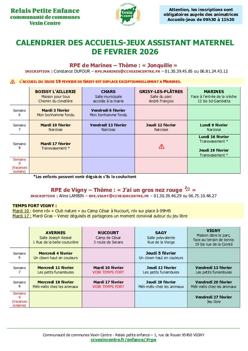 Calendrier Des Accueils-Jeux Assistant Maternel De Février 10/02/2026 CALENDRIER DES ACCUEILS-JEUX ASSISTANT MATERNEL DE FÉVRIER 2026