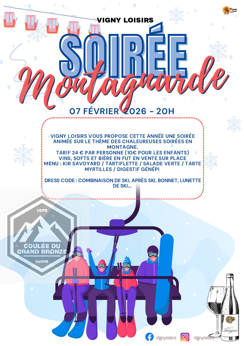 L'association Vigny Loisirs vous propose une soirée montagnarde, samedi 7 février à 20h dans la salle des fêtes.