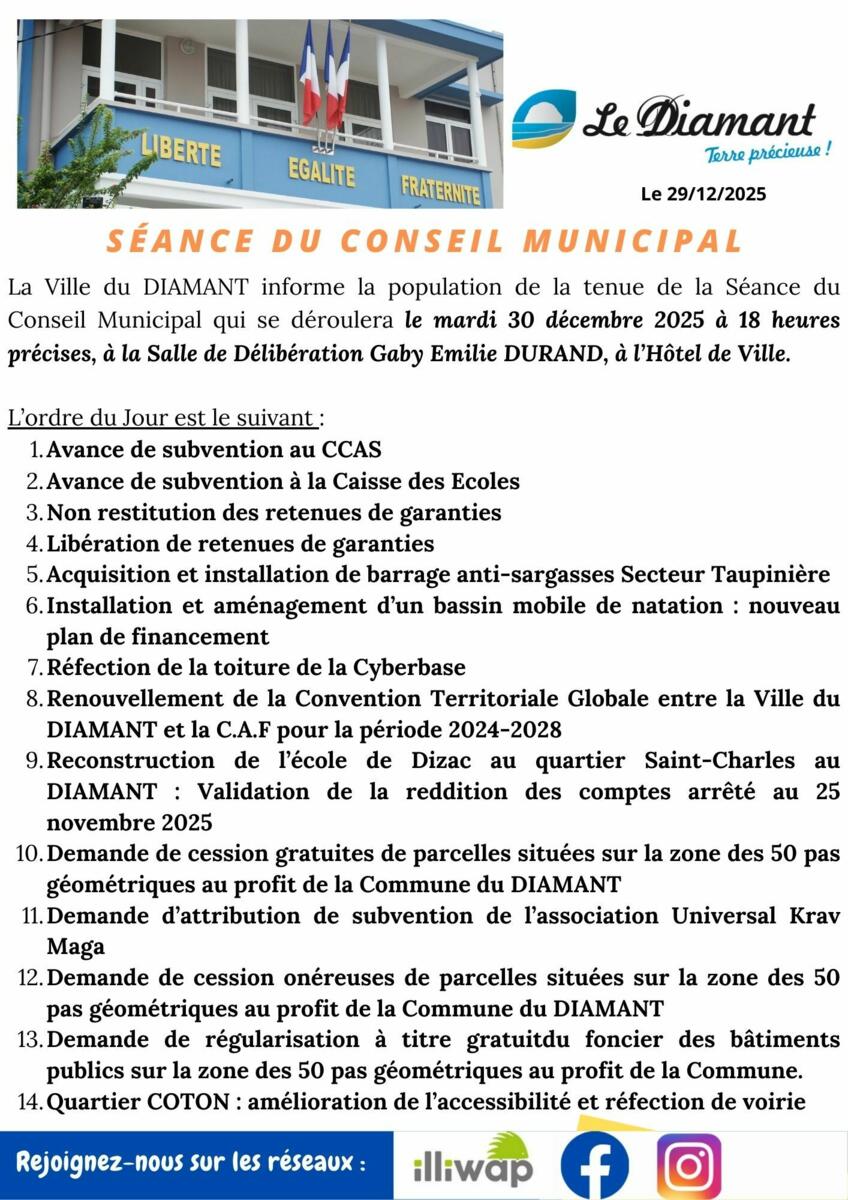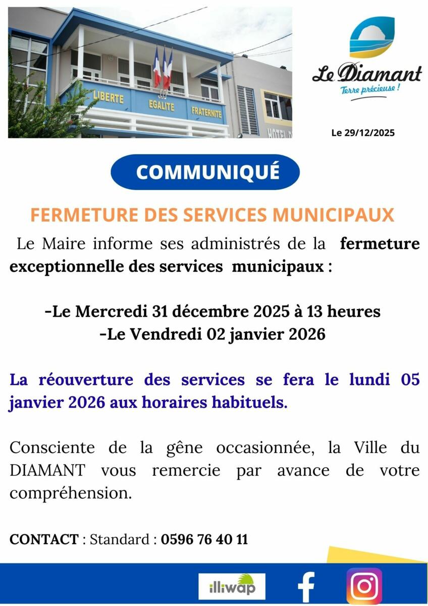 COMMUNIQUE DE LA VILLE DU DIAMANT