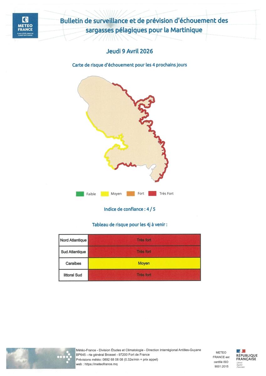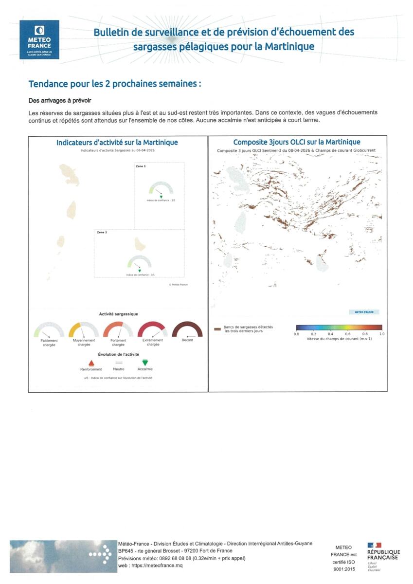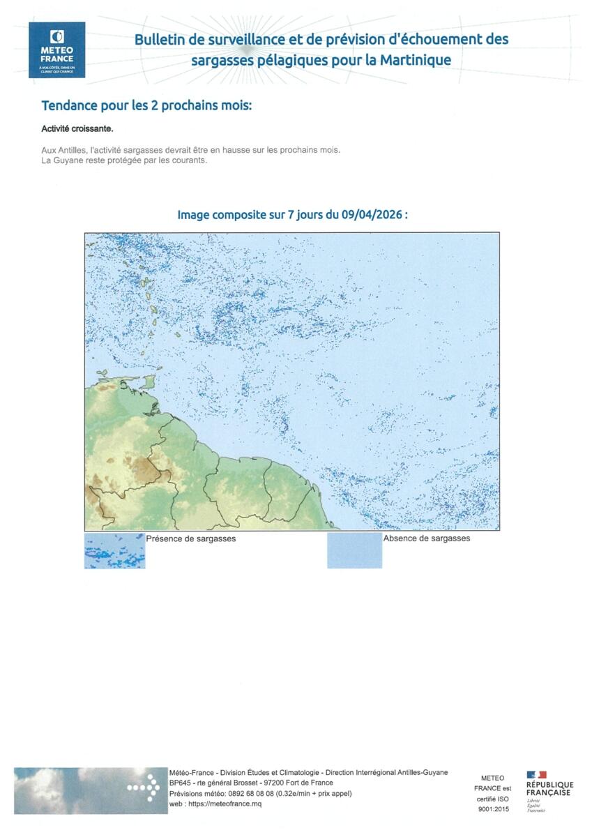 ๐La cote Caraรฏbe n'est pas ร l'abri : plusieurs radeaux repรฉrรฉs dans la mer des Caraรฏbes semblent stagner dans la zone. les faibles vents prรฉvus dans le Nord Caraรฏbe limitent leur dispersion et favorisent leur dรฉrive sur le rivage. Le risque d'รฉchouement y est considรฉrรฉ comme modรฉrรฉ.
