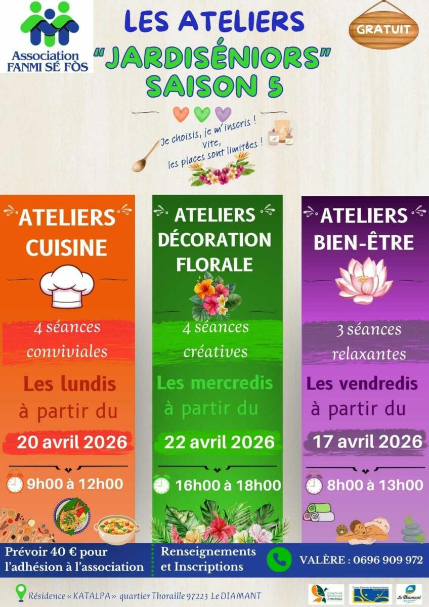 👉L'association 𝗙𝗔𝗡𝗠𝗜 𝗦𝗘́ 𝗙𝗢𝗦, dans le cadre de ses activités, organise les ateliers "𝗝𝗔𝗥𝗗𝗜𝗦𝗘𝗡𝗜𝗢𝗥𝗦" qui se décomposent en 03 ateliers :
