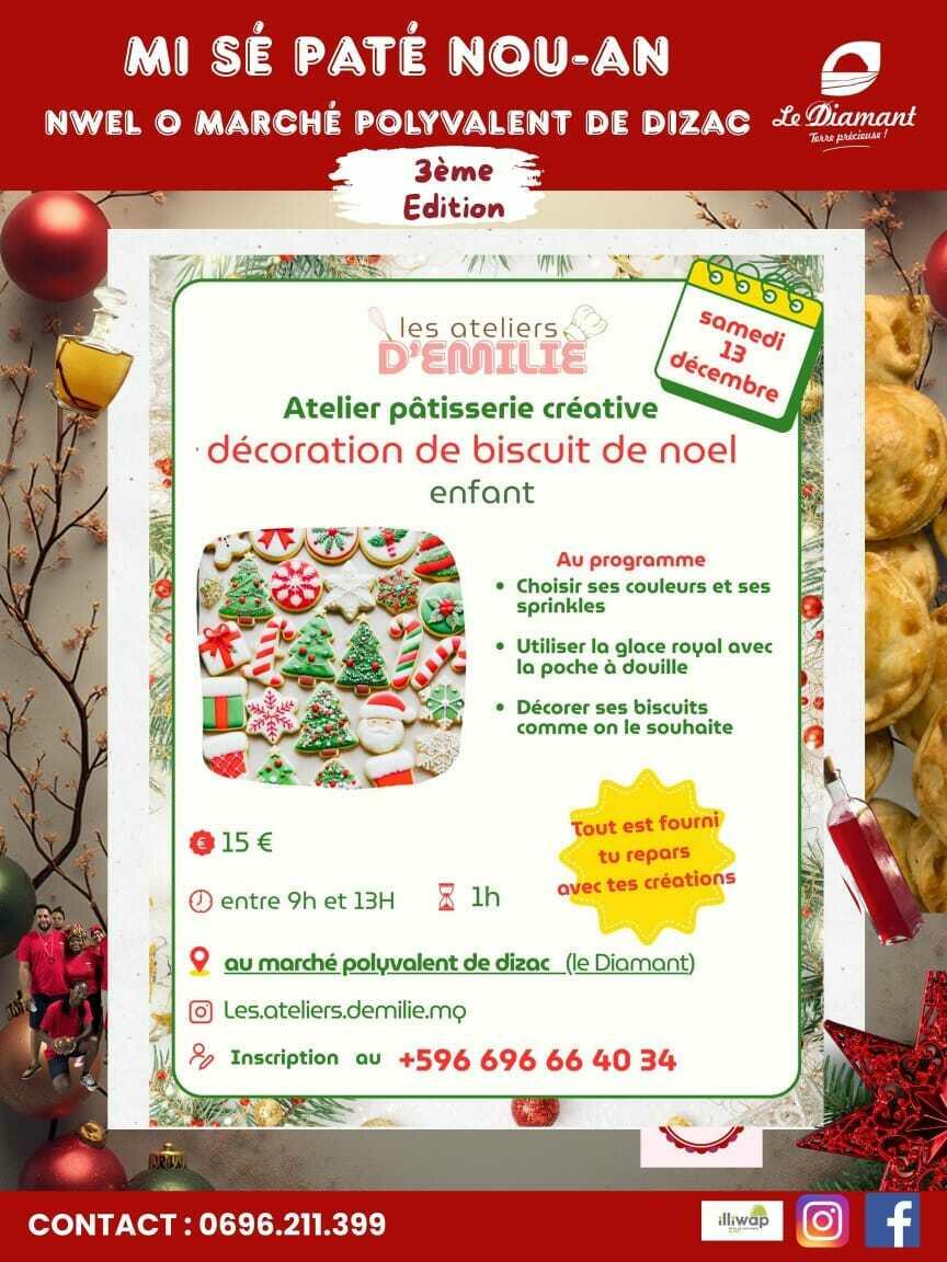 ✔Le second atelier, réservé aux enfants, art et pâtisserie: "décors de Noël sur biscuits" avec "𝙇𝙀𝙎 𝘼𝙏𝙀𝙇𝙄𝙀𝙍𝙎 𝘿'𝙀𝙈𝙄𝙇𝙄𝙀" qui proposent aux enfants un atelier de pâtisserie créative : avec "la décoration de biscuit de Noël".