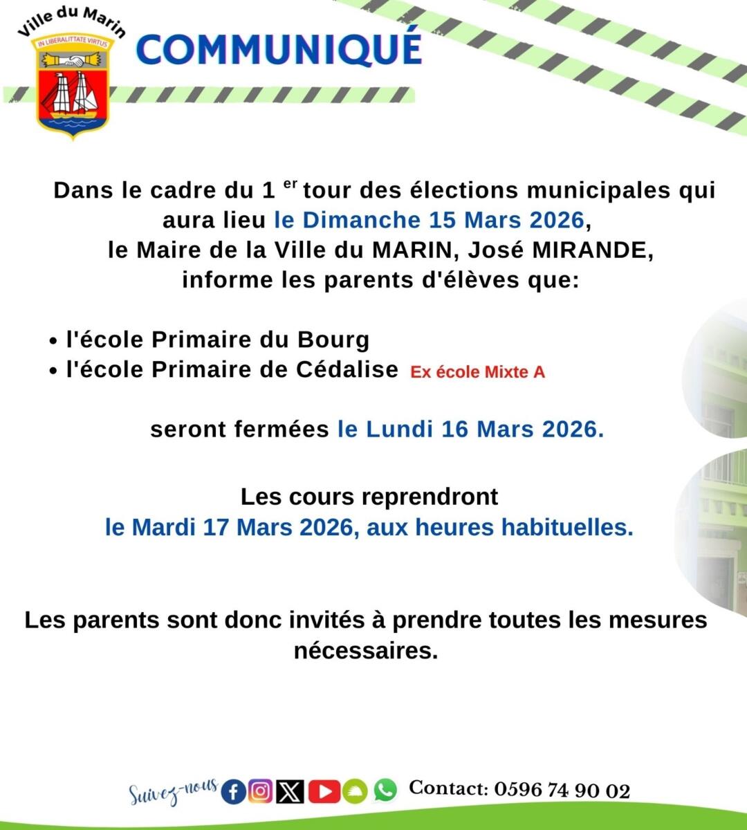 Les dispositions prises par la Ville du Marin dans le cadre des élections municipales et communautaires sont à consulter :