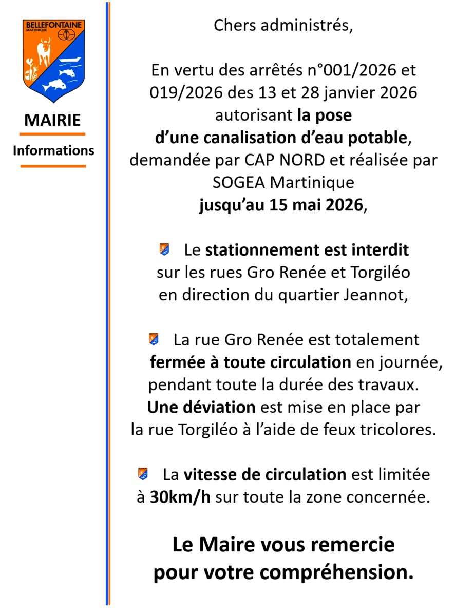 Pose canalisation d'eau potable - Travaux jusqu'au 15/05/26