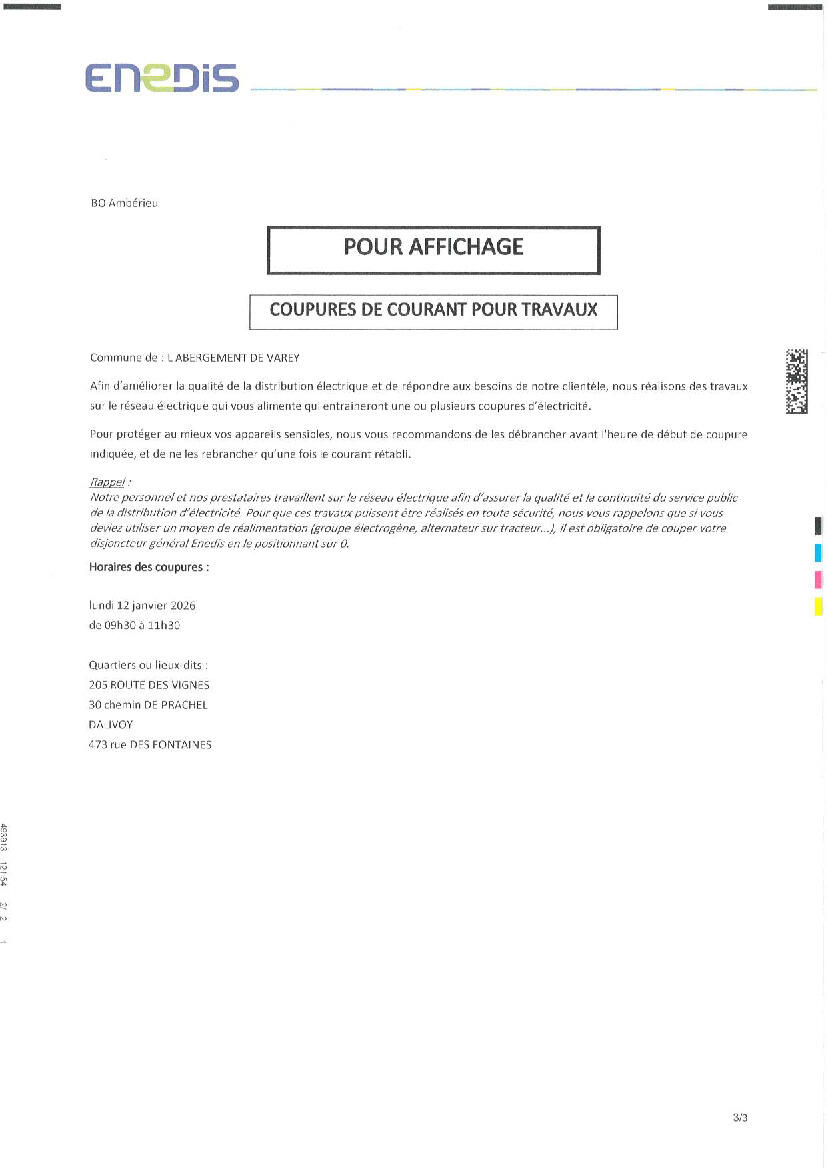 COUPURES DE COURANT LE 12 JANVIER 2026