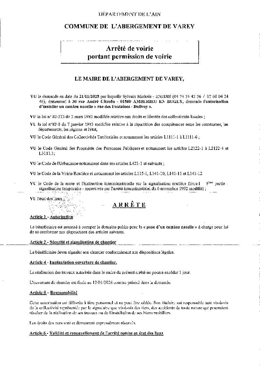 FERMETURE RUE DES FONTAINES - DALIVOY