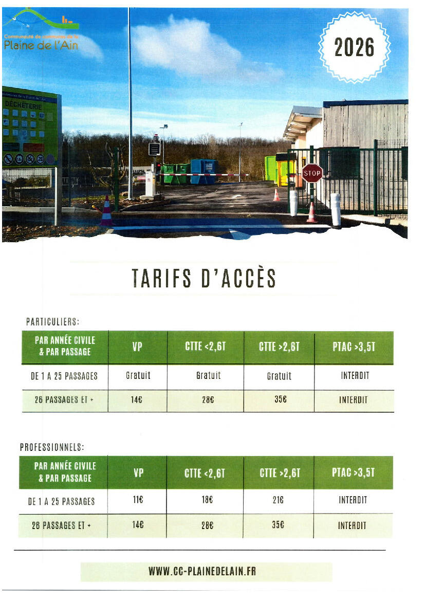 TARIFS DECHETERIE