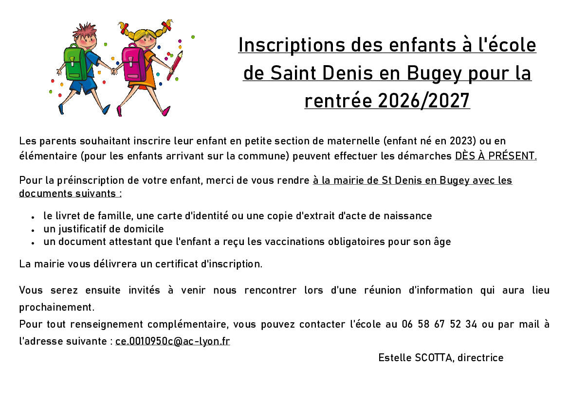 Inscription rentrée scolaire 2026