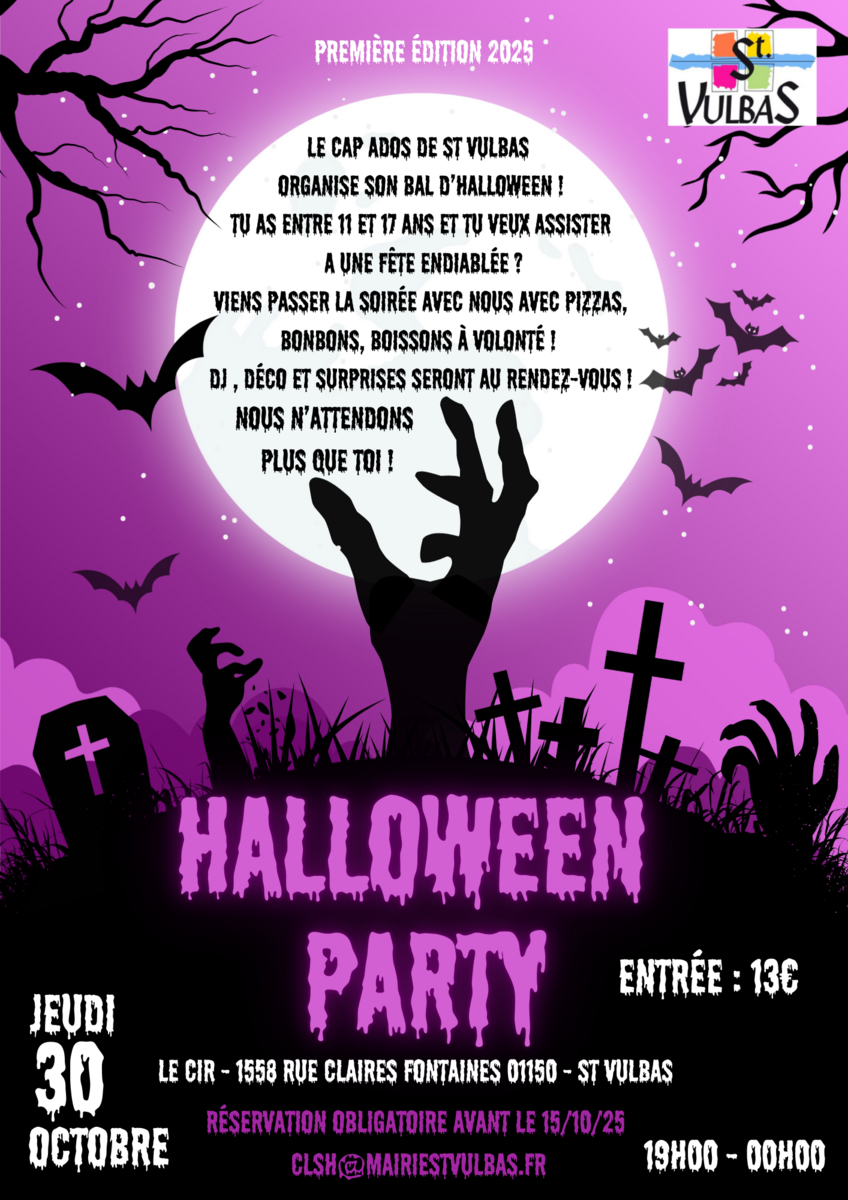 Votre mairie / ActualitĂ©s / 🧟Halloween Party des 11/17 ans Ă  Saint-Vulbas