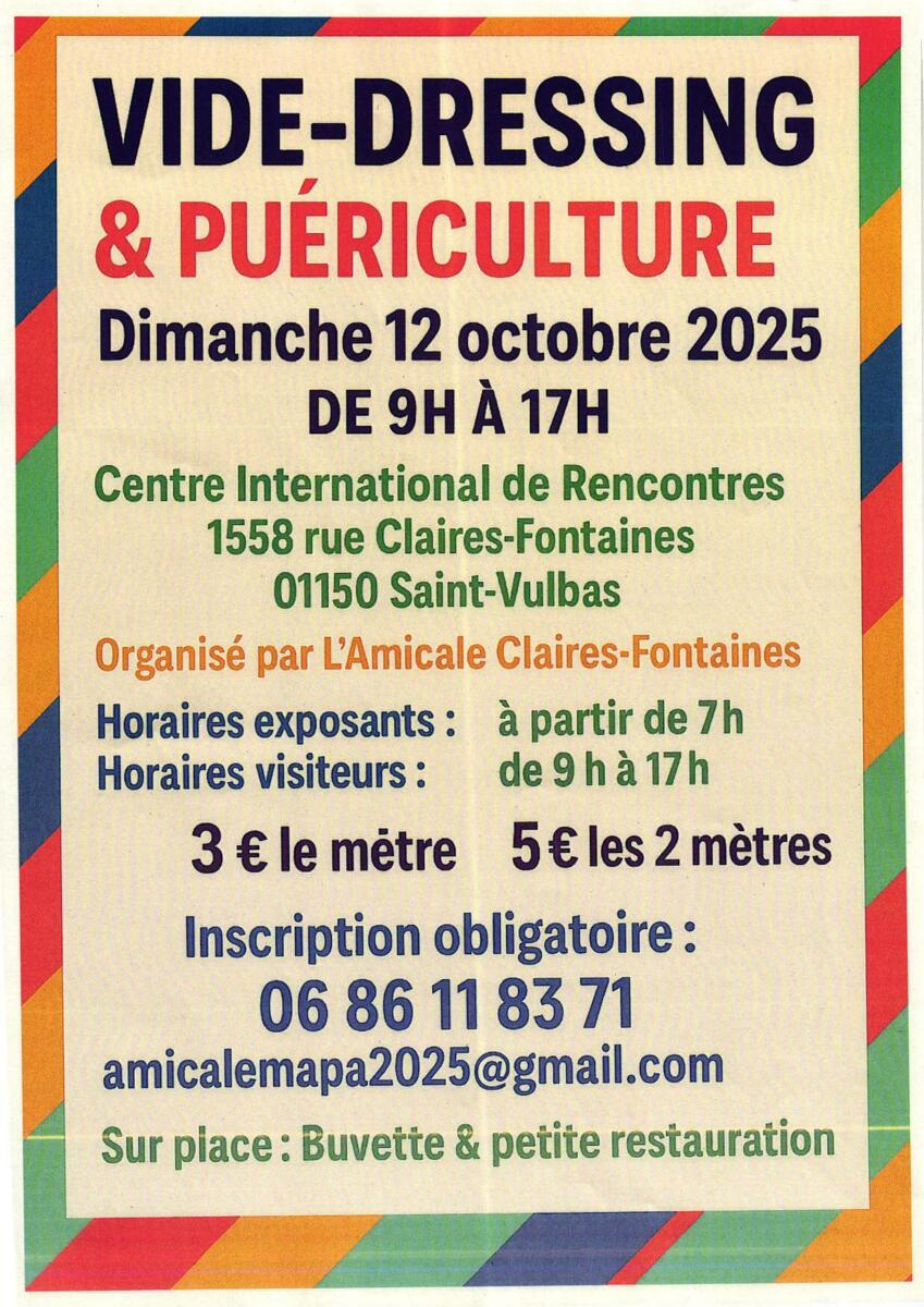 Vide dressing + Puériculture le dimanche 12 octobre de 9h à 17h