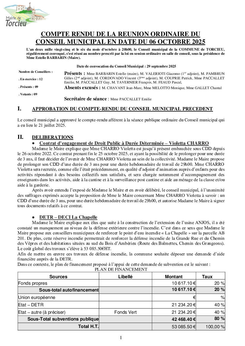 Compte rendu du Conseil Municipal - 06 octobre 2025
