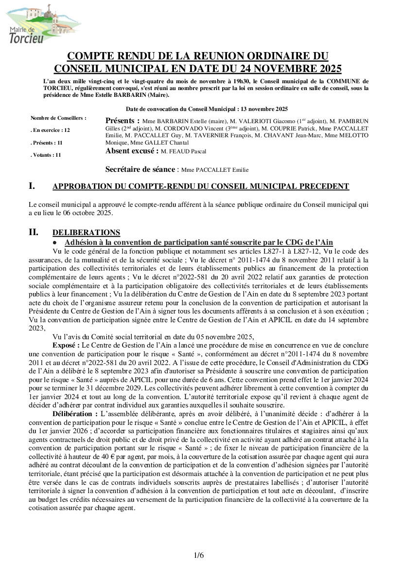 Compte rendu du Conseil Municipal - 24 novembre 2025