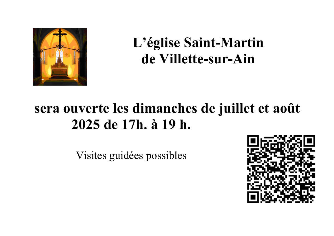 Message de L'Association AREV 02/07/2025 L'Association vous propose des visites de l'Eglise cet été AREV - Villette-sur-Ain