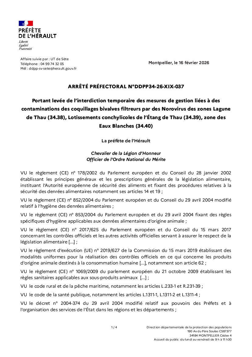 Vente de coquillages : levée des restrictions
