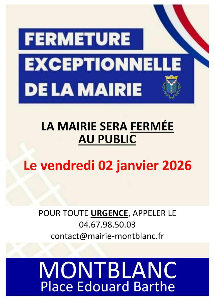 CE VENDREDI 2 JANV. : LA MAIRIE SERA FERMÉE AU PUBLIC