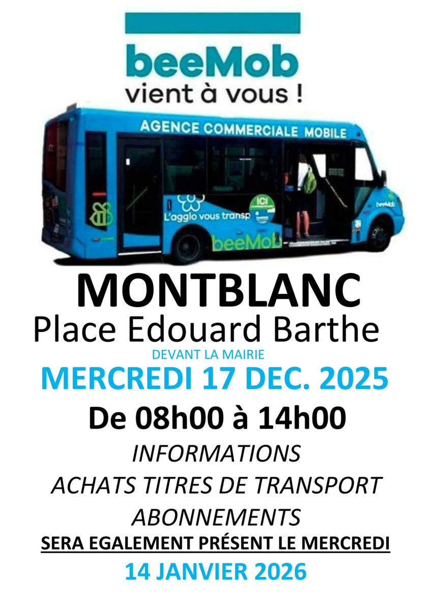 Votre mairie / Actualités / CE MERCREDI 17 DÉC. : L'AGENCE BEEMOB VIENT À VOUS !