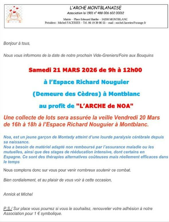 Votre mairie / Actualités / SAMEDI 21 MARS : VIDE-GRENIERS FOIRE AUX BOUQUINS DE L'ARCHE