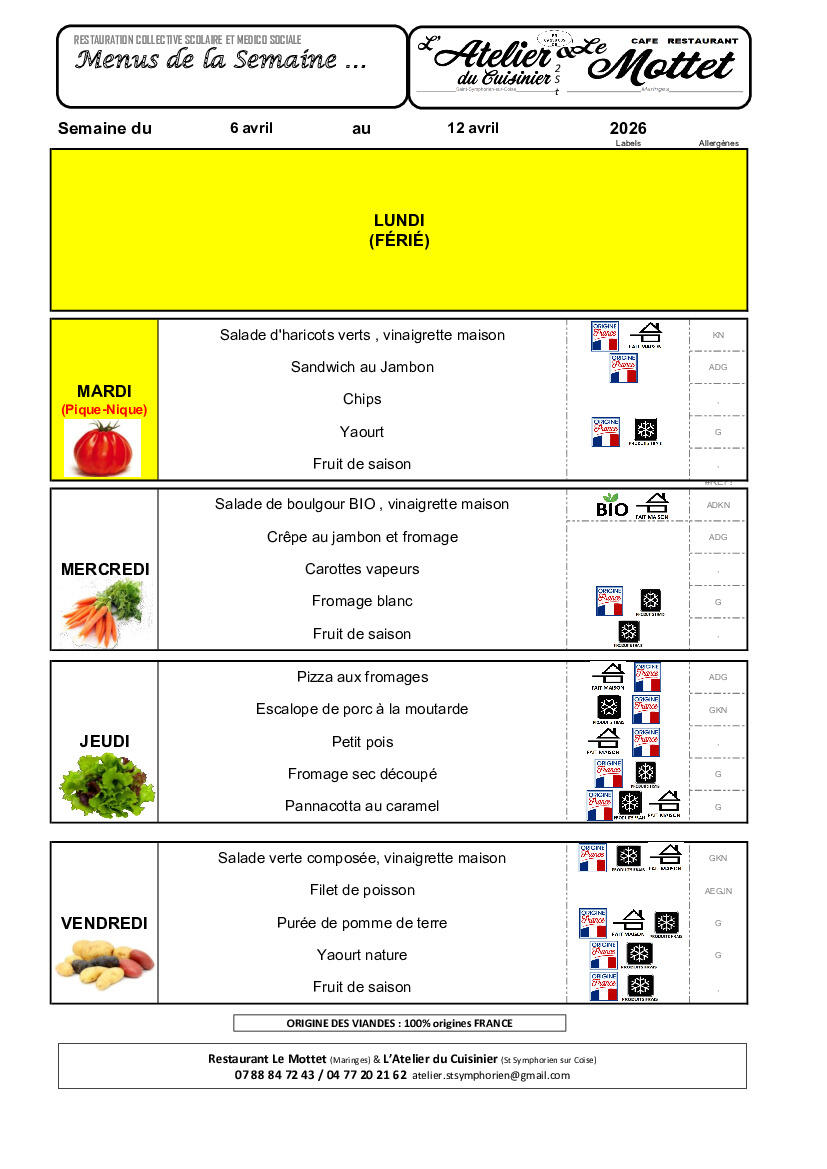 Menus cantine semaine 15
