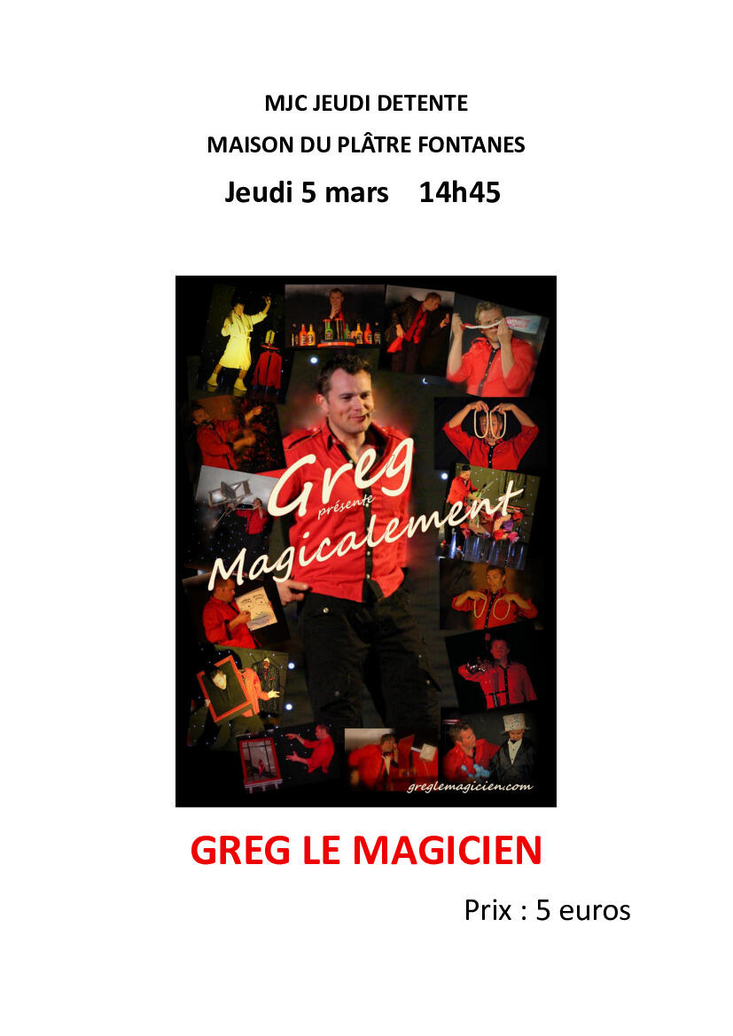 Votre mairie / Actualités / Jeudi Détente : Greg le magicien le 5 mars à 14h45