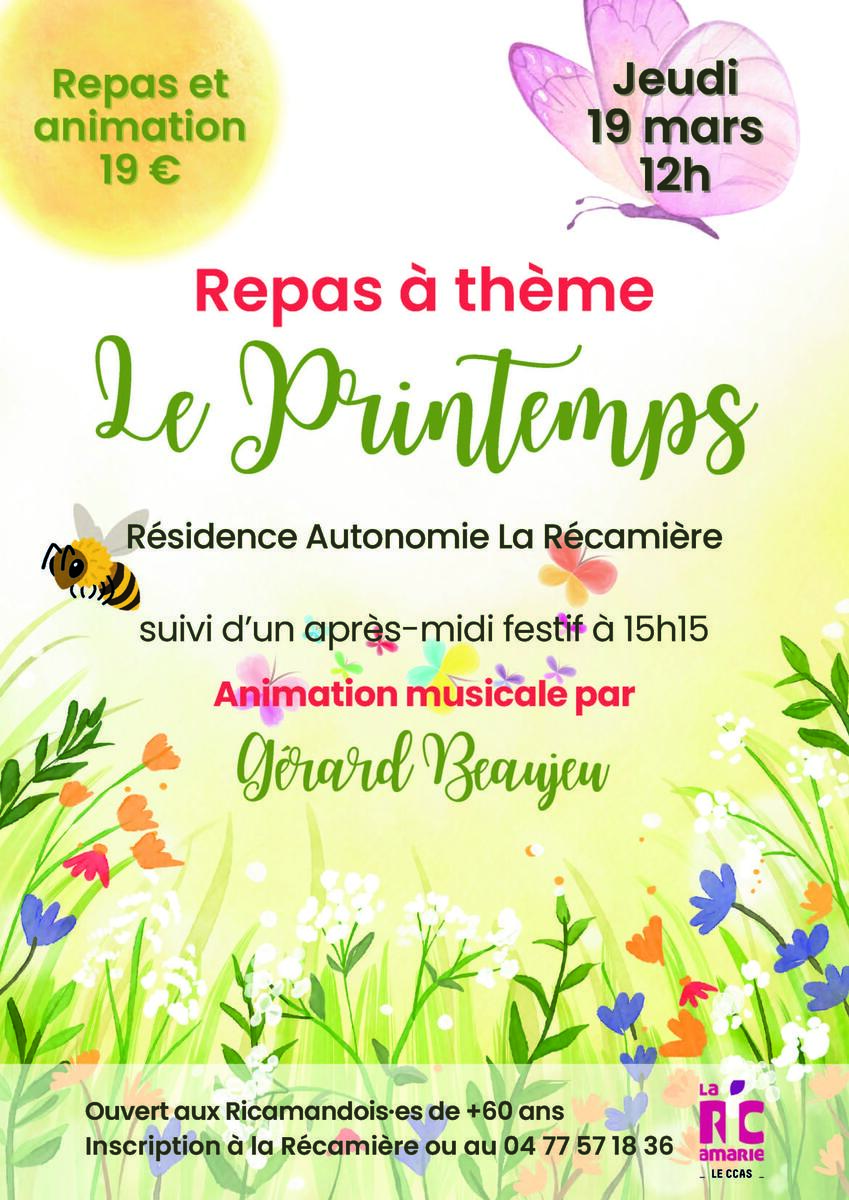 Le CCAS organise à la Résidence autonomie La Récamière un repas à thème autour du printemps le jeudi 19 mars à 12h.