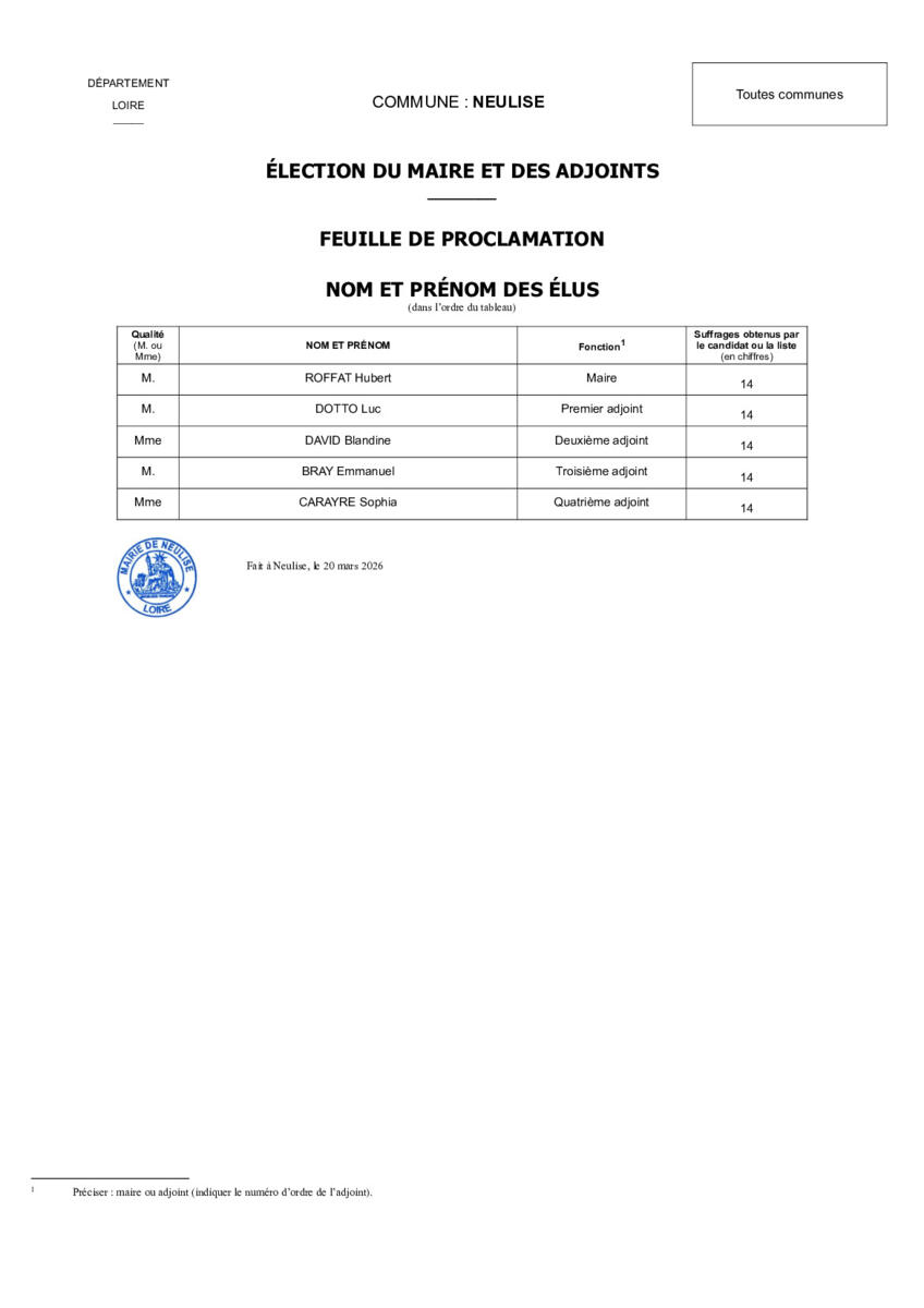 Toute l'actualité de Mairie de Neulise