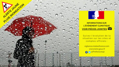 Météo-France a placé le département de la Loire en vigilance «ORANGE» pour le phénomène ORAGE. Il débutera ce mercredi 27 août 2025 à compter de 14h jusqu’à 5h le lendemain. Le département est également placé en vigilance « JAUNE » pour le risque PLUIE-INONDATION.