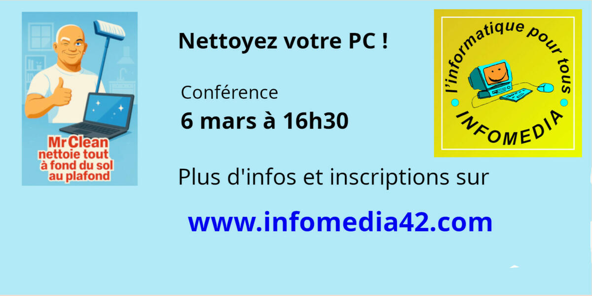 Conférence Infomédia : nettoyer son ordinateur du sol au plafond