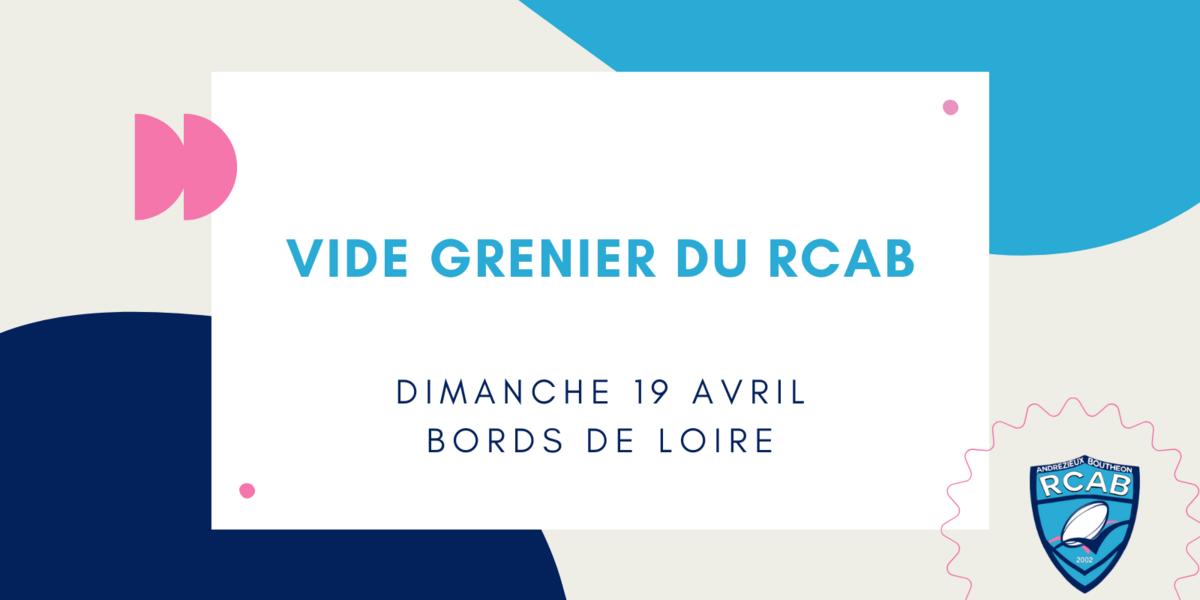 Amateurs de bonnes affaires et chineurs passionnés, ne manquez pas le vide-grenier du RCAB le dimanche 19 avril, de 6 h à 16 h, sur les bords de Loire ! Tarifs et réservation : RCAB. Organisé par le RCAB – Infos complémentaires auprès du club.