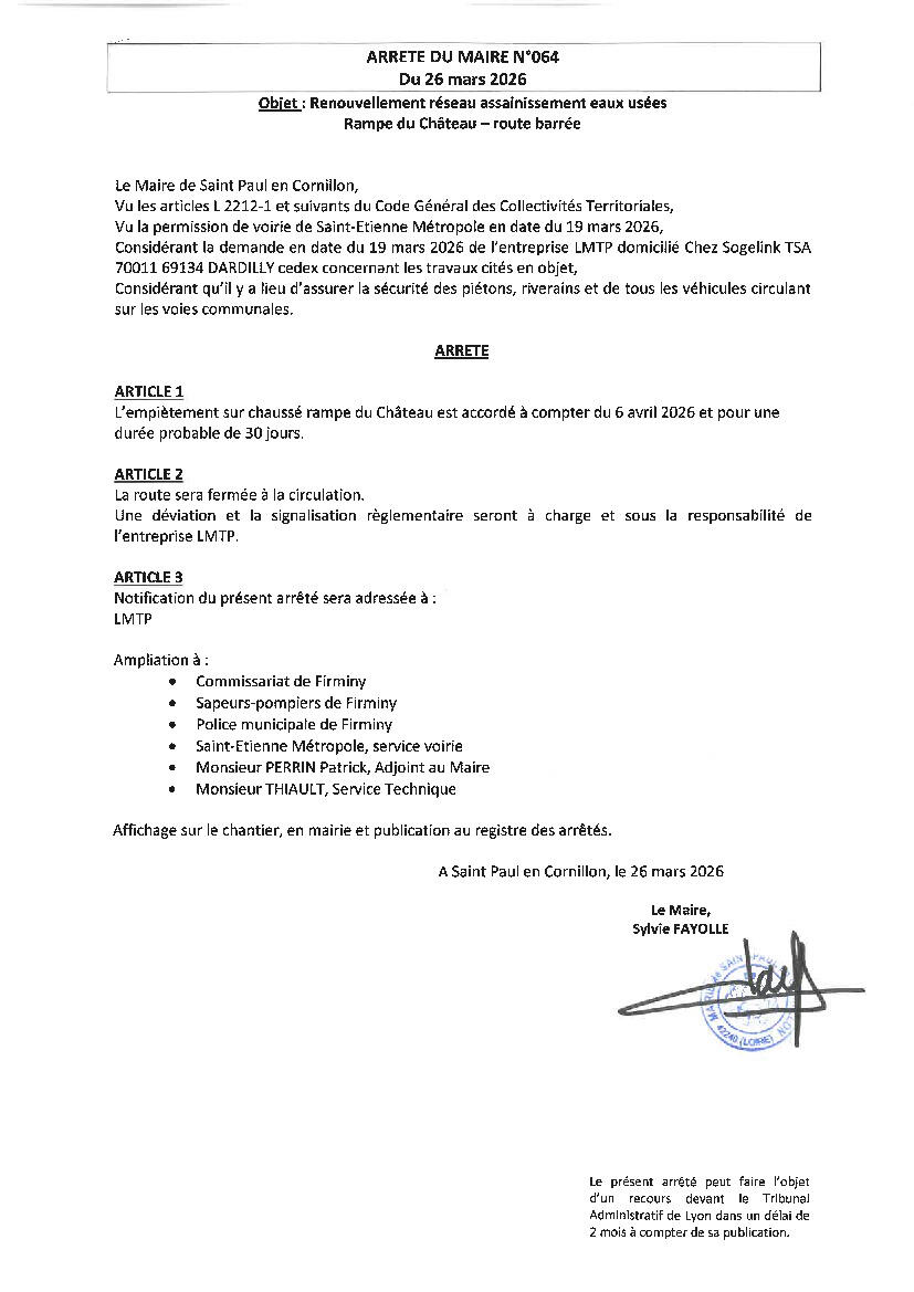 Toute l'actualité de Mairie de Saint-Paul-en-Cornillon