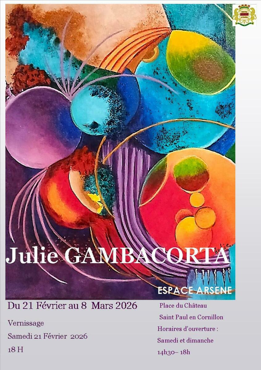 Exposition Julie Gambacorta - Espace Arsène 20/02/2026 Exposition Julie GAMBACORTA à l'Espace ARSENE du samedi 21 février au dimanche 8 mars 2026 Ouvert les samedis et dimanches de 14h30 à 18 h Vernissage samedi 21 février 18h Entrée libre
