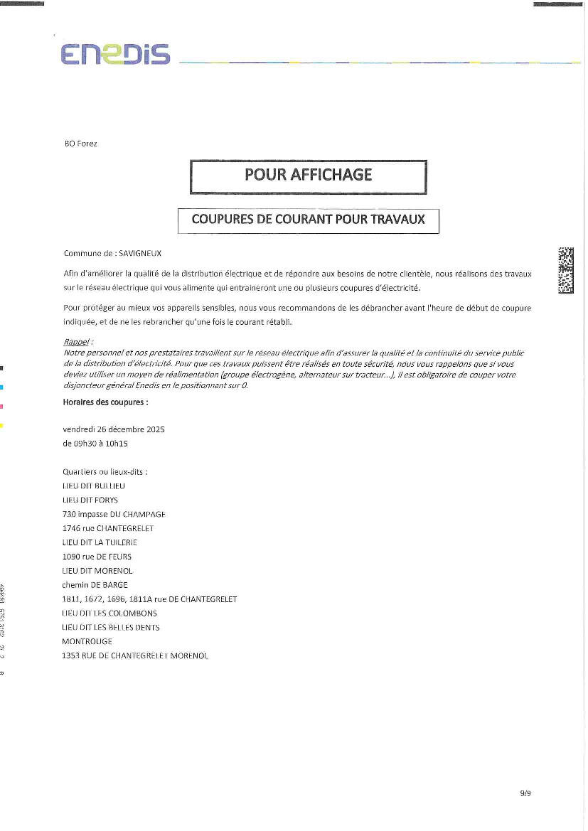 Coupure de courant pour travaux