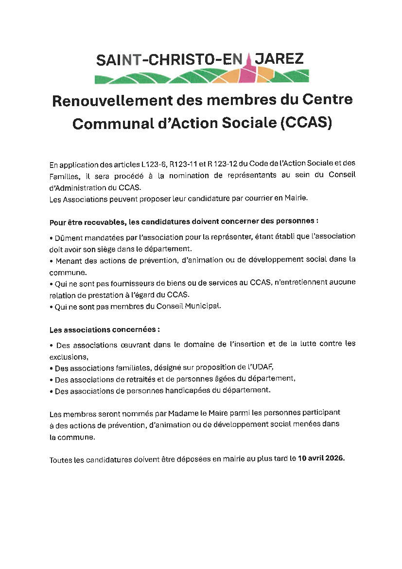 Renouvellement des membres du Centre Communal d'action Sociale (CCAS)