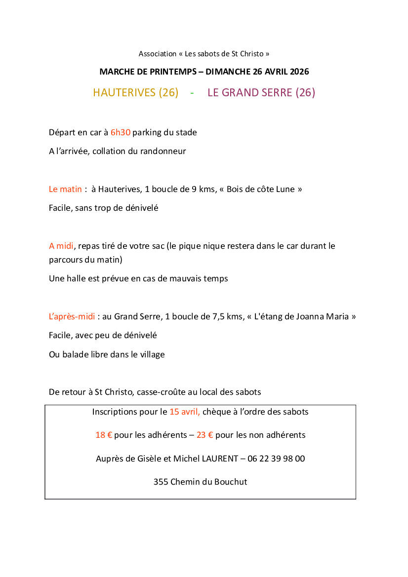 Sortie printemps des sabots 31/03/2026 Sortie printemps des sabots Source : Mairie de Saint-Christo-en-Jarez
