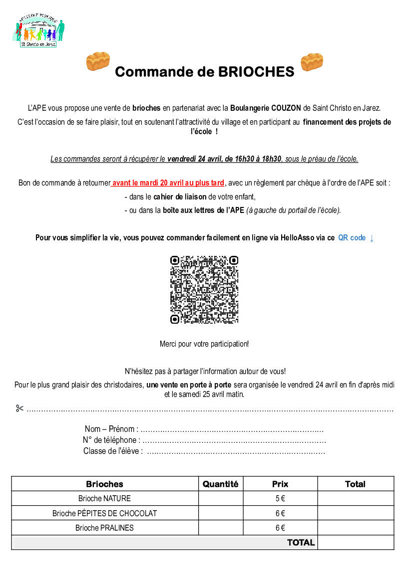Votre mairie / Actualités / Vente de brioches