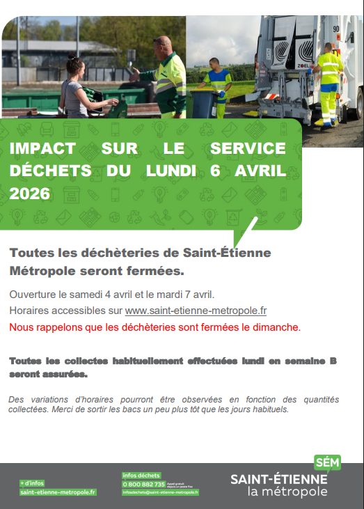 Infos déchets pour le service du lundi 6 Avril