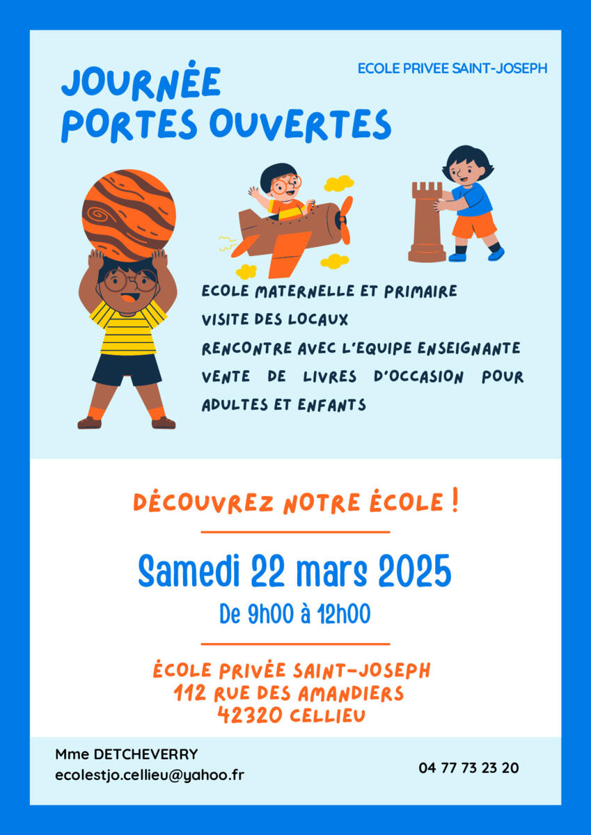 Journée porte ouverte école Saint-Joseph ! 04/02/2025 La matinée portes ouvertes de l'école St Joseph aura lieule samedi 22 mars de 9h à 12h !