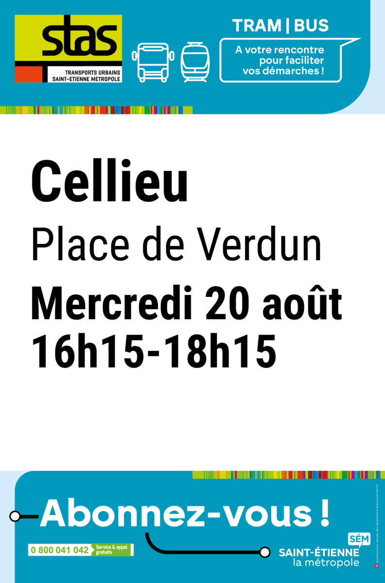 Permanence STAS -Rentrée 12/08/2025 Permanence Rentrée STAS Place de Verdun - CELLIEU Mercredi 20 août 2025 16h15-18h15