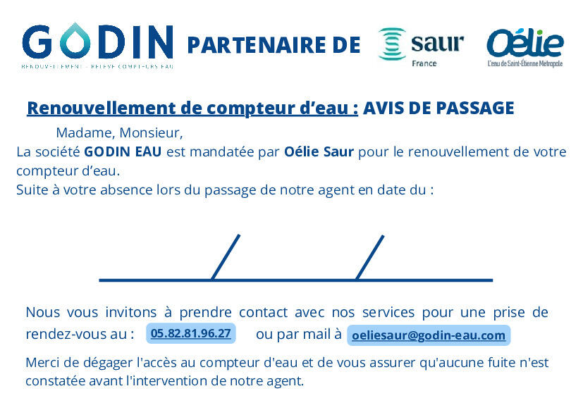 Ces remplacements de compteur seront réalisés sous environ un mois par le prestataire GODIN ( vous pourrez avoir un avis de passage dans votre boite aux lettres.)