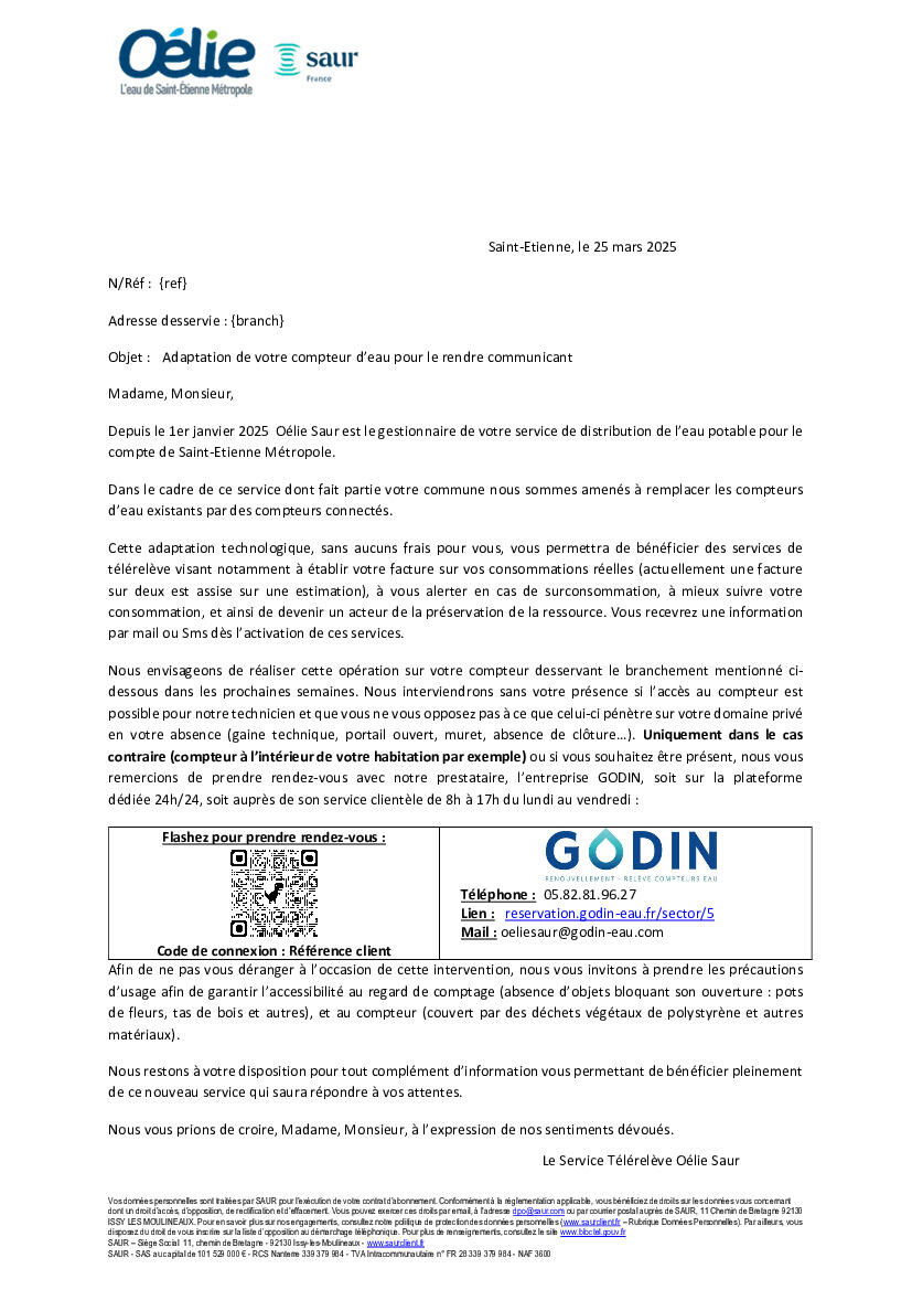 Nous vous précisons que les services associés à la télérelève seront disponibles dès lors que l'abonné aura reçu une information complémentaire de la part de SAUR.