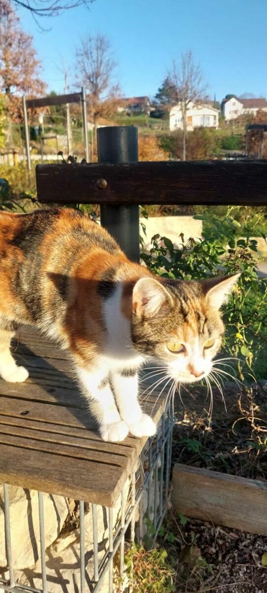 Une chatte errante à trois couleurs (tricolore) a été aperçue vers la maison de la Rose.