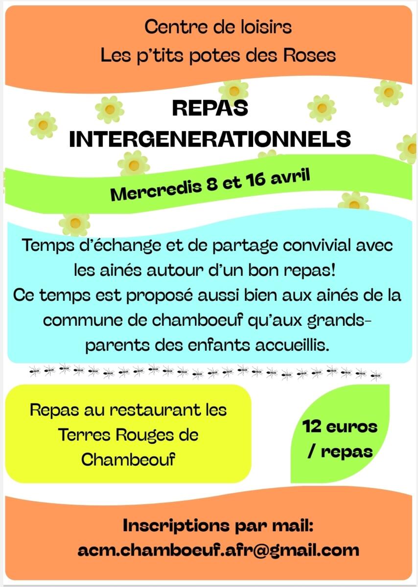 Centre De Loisirs Afr 01/04/2026 Le centre de loisirs ouvre pendant les deux semaines de vacances d'avril ; Il reste des places .. Des repas intergénérationnels sur les deux mercredis seront ouverts aux aînés et grands parents