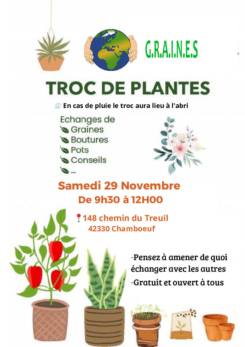 Troc de Plantes - Association G.R.A.I.N.E.S 06/11/2025 Troc de Plantes Le samedi 29 Novembre 2025 au Treuil