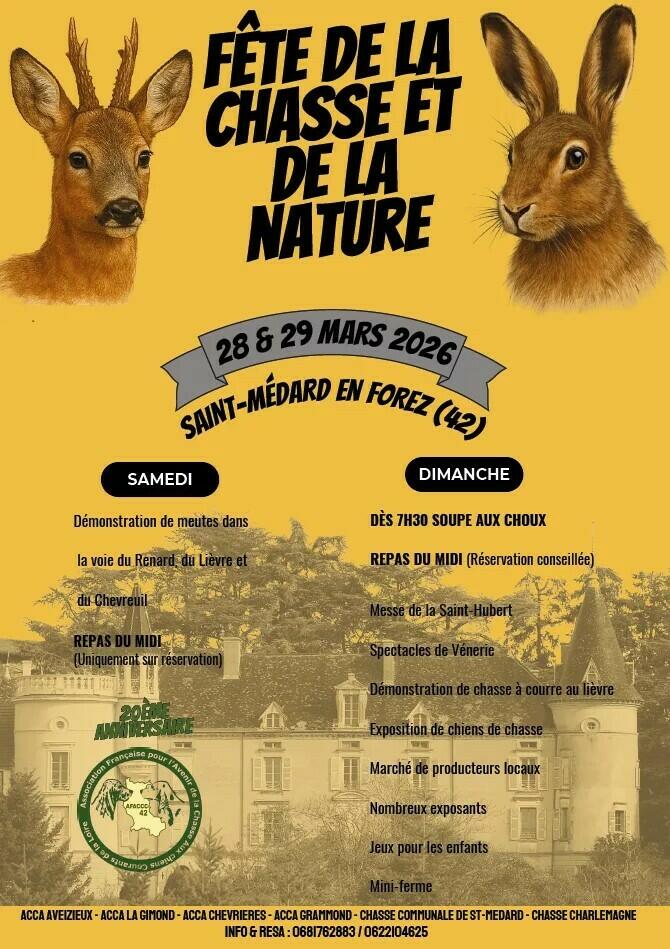 La Fête de la chasse et de la nature aura lieu les 28 et 29 mars 2026 à Saint-Médard-en-Forez.