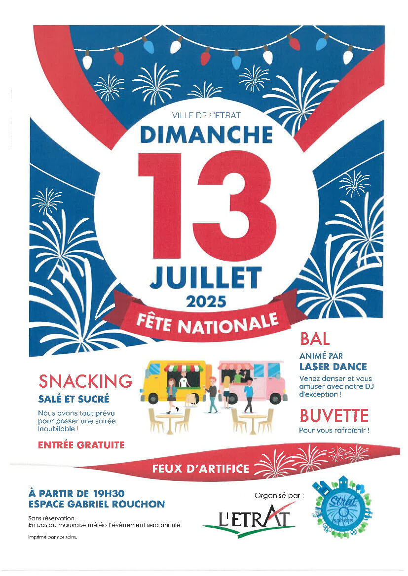Fête du 13 juillet 2025 01/07/2025 Dimanche 13 juillet 2025 à partir de 19h30 Espace Gabriel Rouchon Bal, buvette, snacking