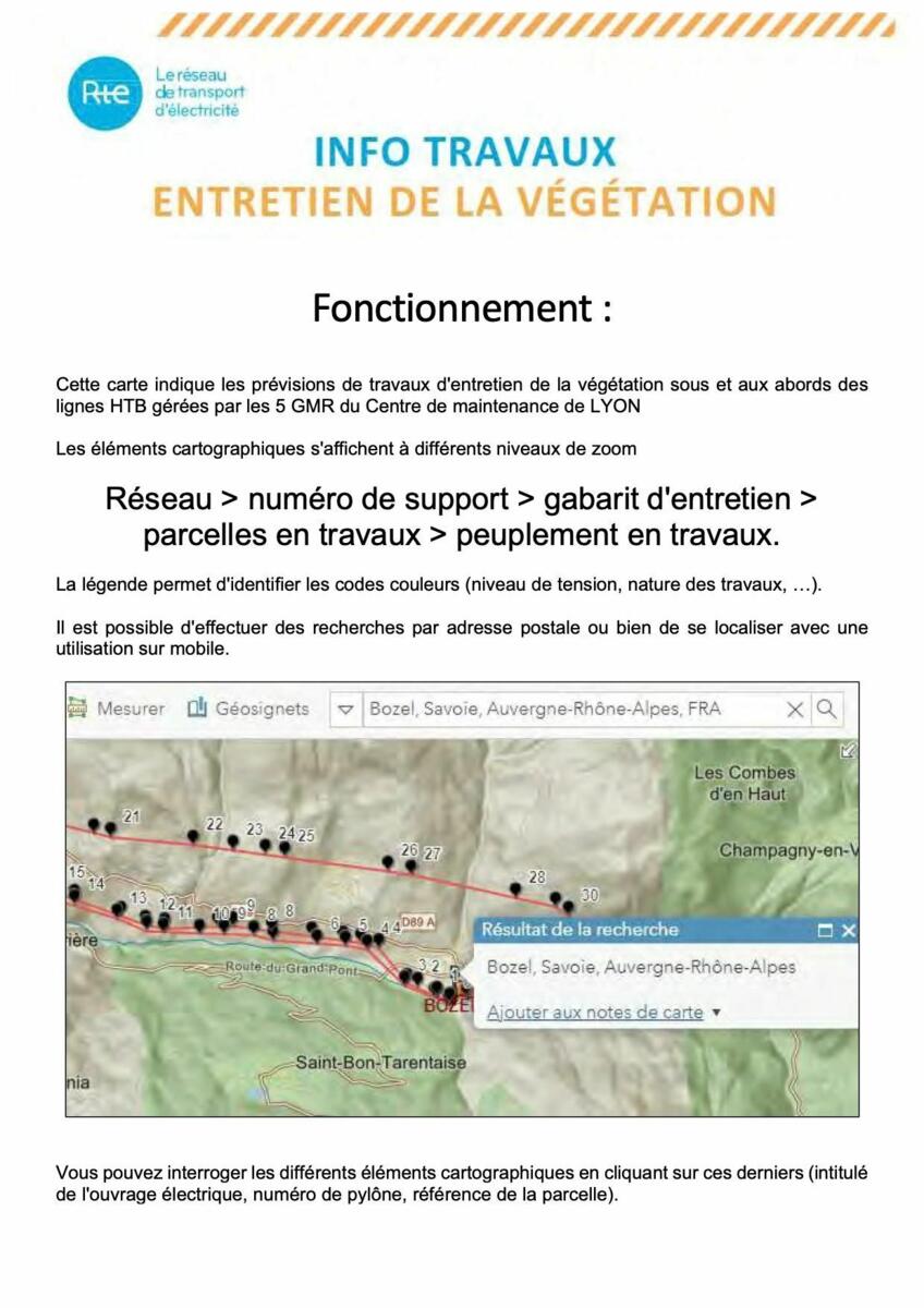 RTE innove et met à disposition du grand public une carte interactive recensant les travaux de végétation prévus cette année. Pour les consulter et voir quelles parcelles sont concernées, cliquez sur le lien suihttps://www.arcgis.com/home/webmap/viewer.html?webmap=757e1986c1d84c78a03430d78746f7f0&extent=1.474,43.8207,8.5657,47.0459