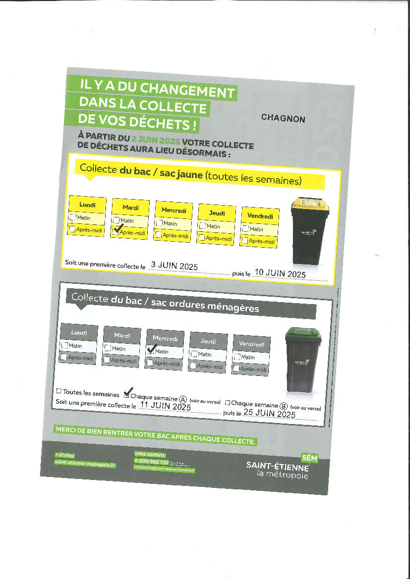 CHANGEMENT COLLECTE DES DECHETS Annule et remplace